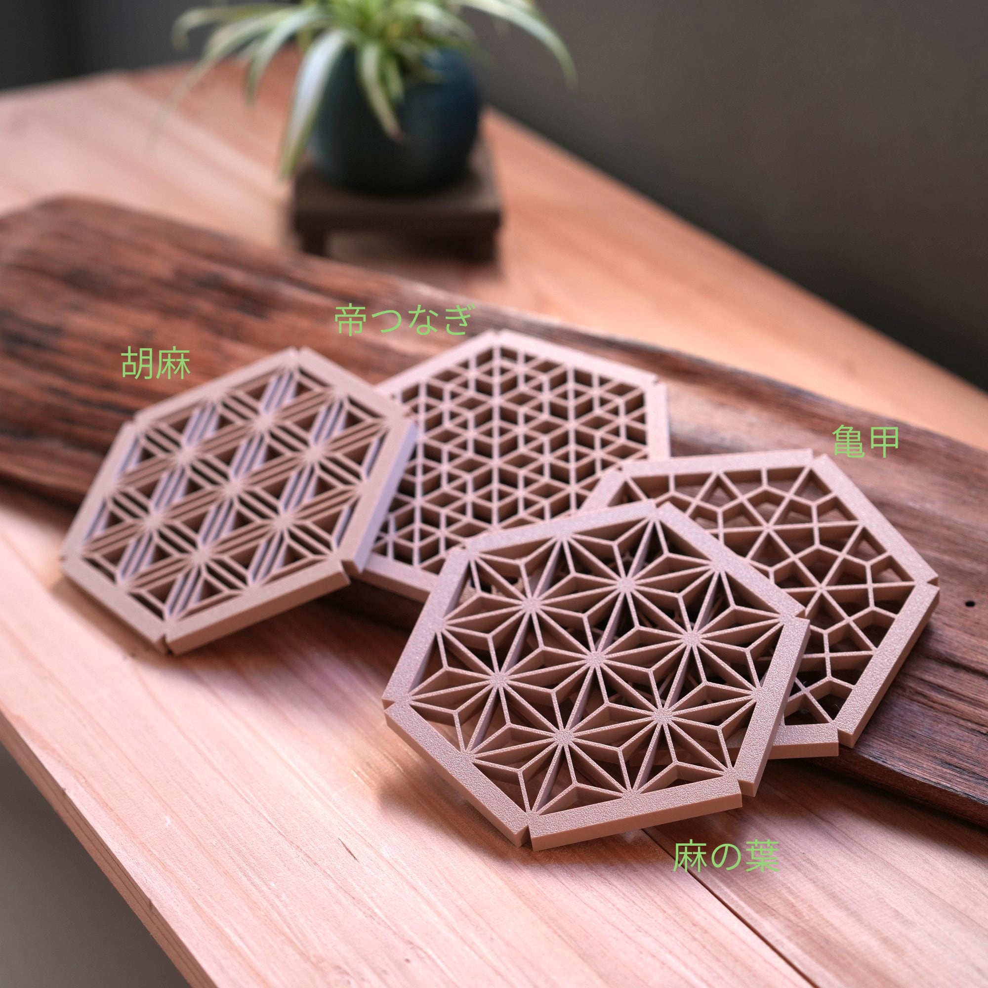 組子模様のコースター「花緒の敷きもの」|和のぬくもりを感じるテーブル雑貨