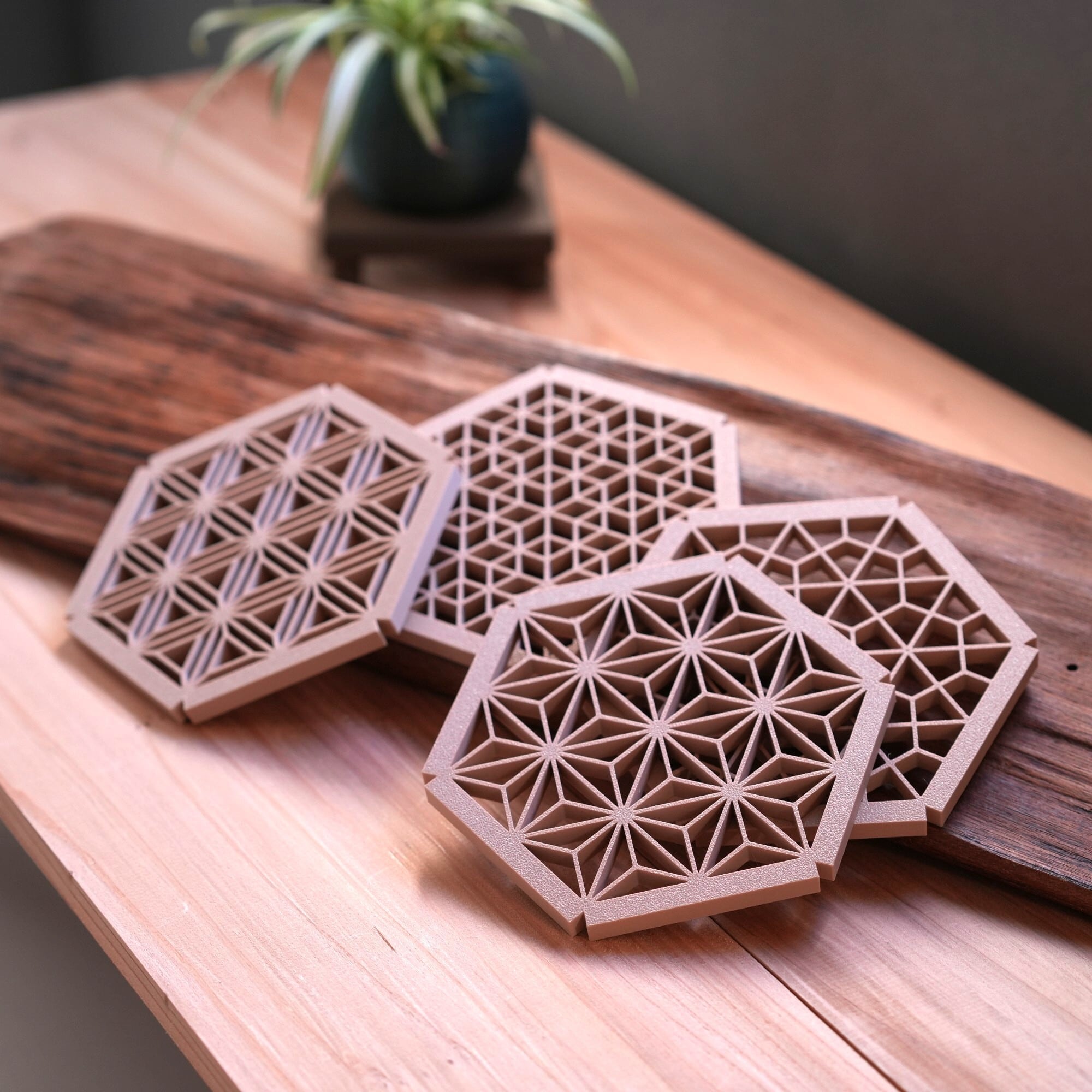 日本の伝統工芸「組子細工」をモチーフにしたコースター。