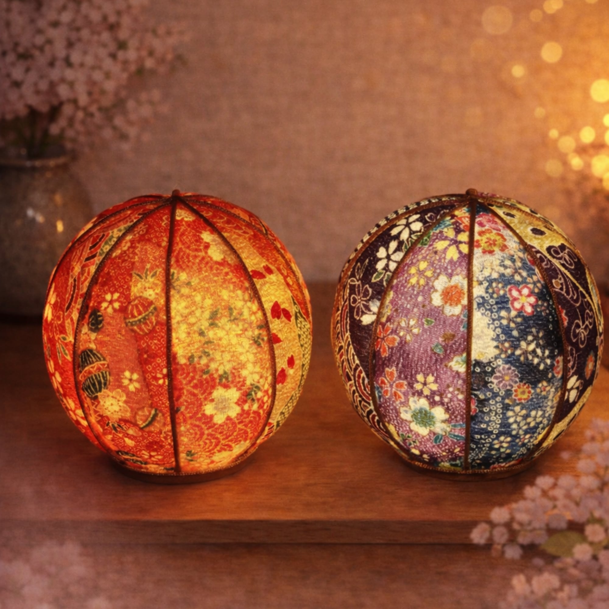 ちりめん手毬ランプ(茜-あかね-)| 手毬のぬくもりの灯り