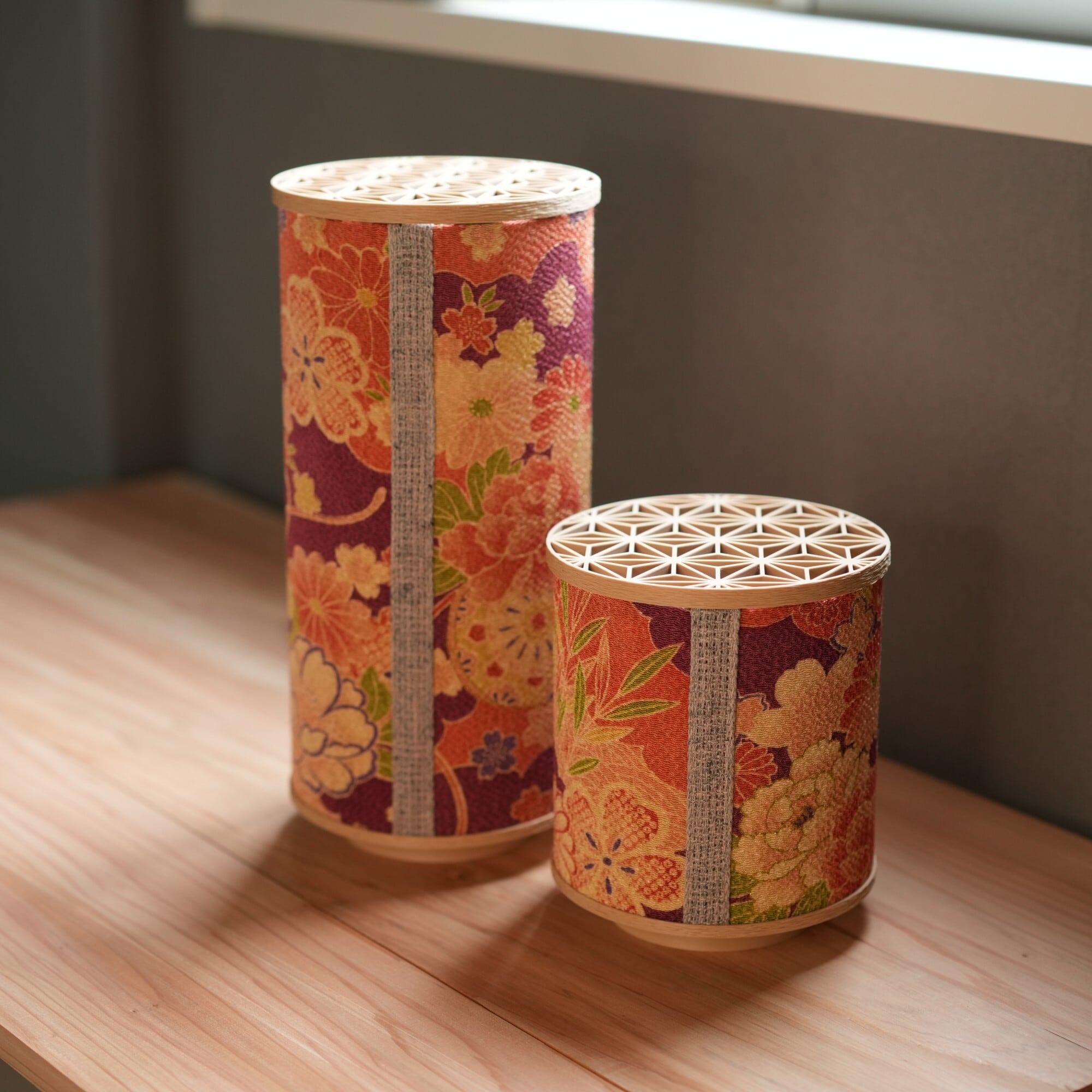 灯りをともすと、生地越しにやわらかな光が広がり